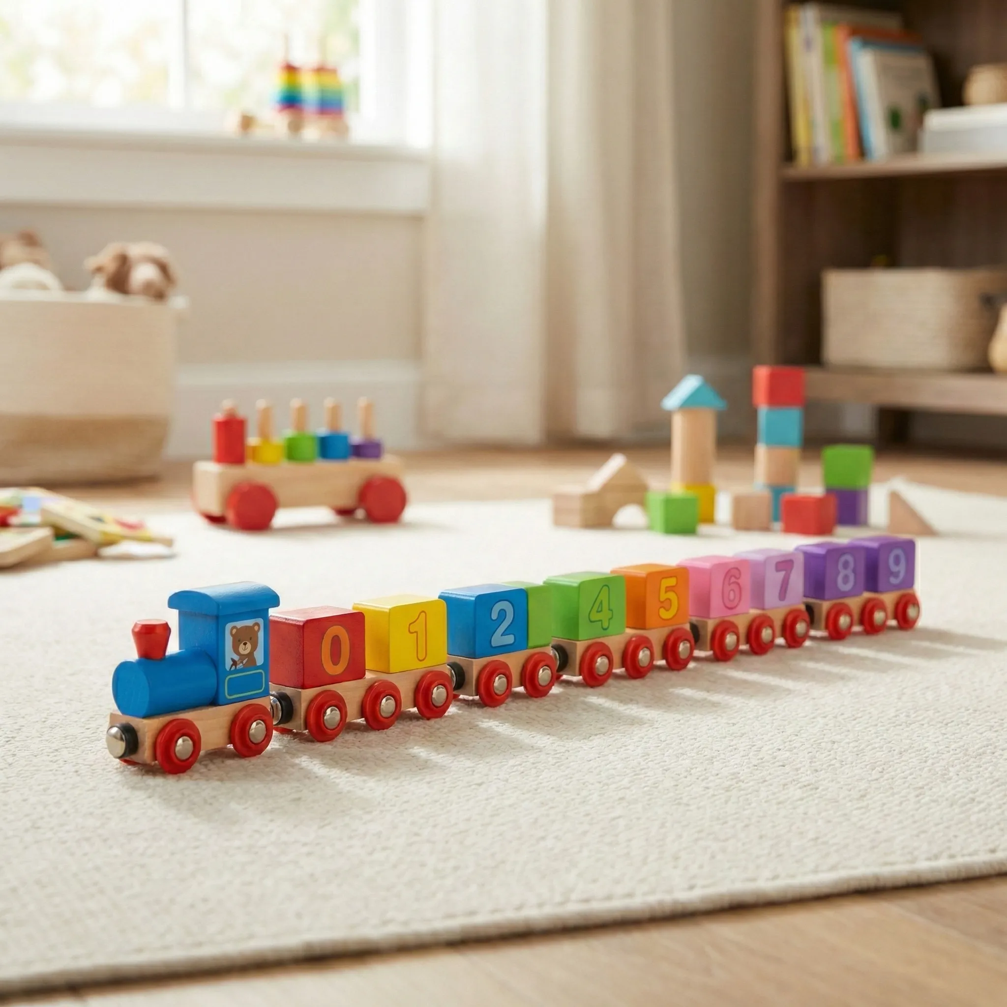 - Învățare prin Joacă: Aranjarea vagoanelor în ordinea corectă stimulează recunoașterea numerelor și dezvoltarea logicii matematice de la o vârstă fragedă.