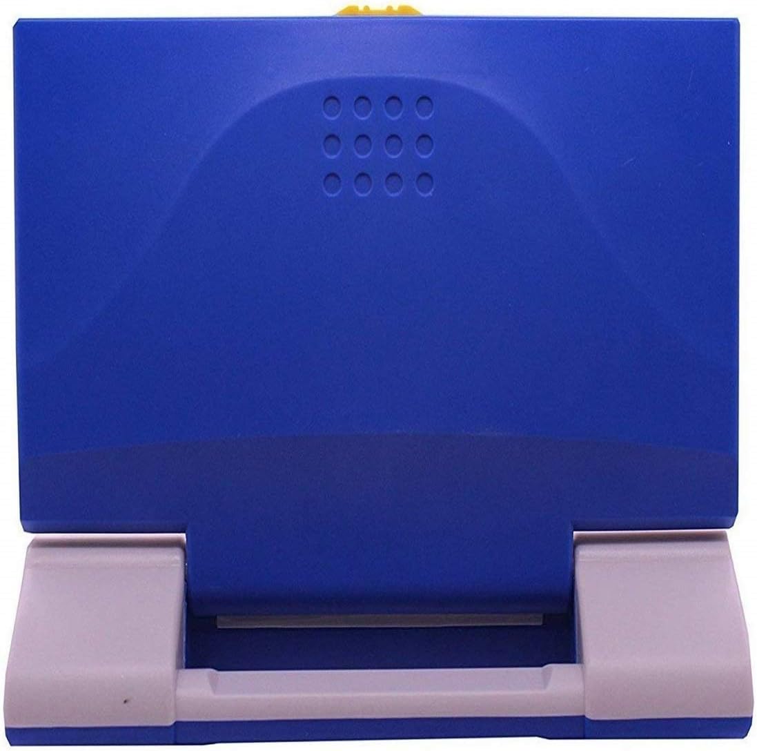 Din imaginile prezentate se observă un laptop de jucărie cu design pliabil, asemănător unui laptop clasic. Carcasa este realizată din plastic, în combinație de culori alb și albastru, cu finisaje netede și colțuri rotunjite, adaptate utilizării de către copii. Ecranul este de tip LCD monocrom, integrat în partea superioară, iar sub acesta este amplasată o zonă de control vizual cu meniuri și pictograme educative.