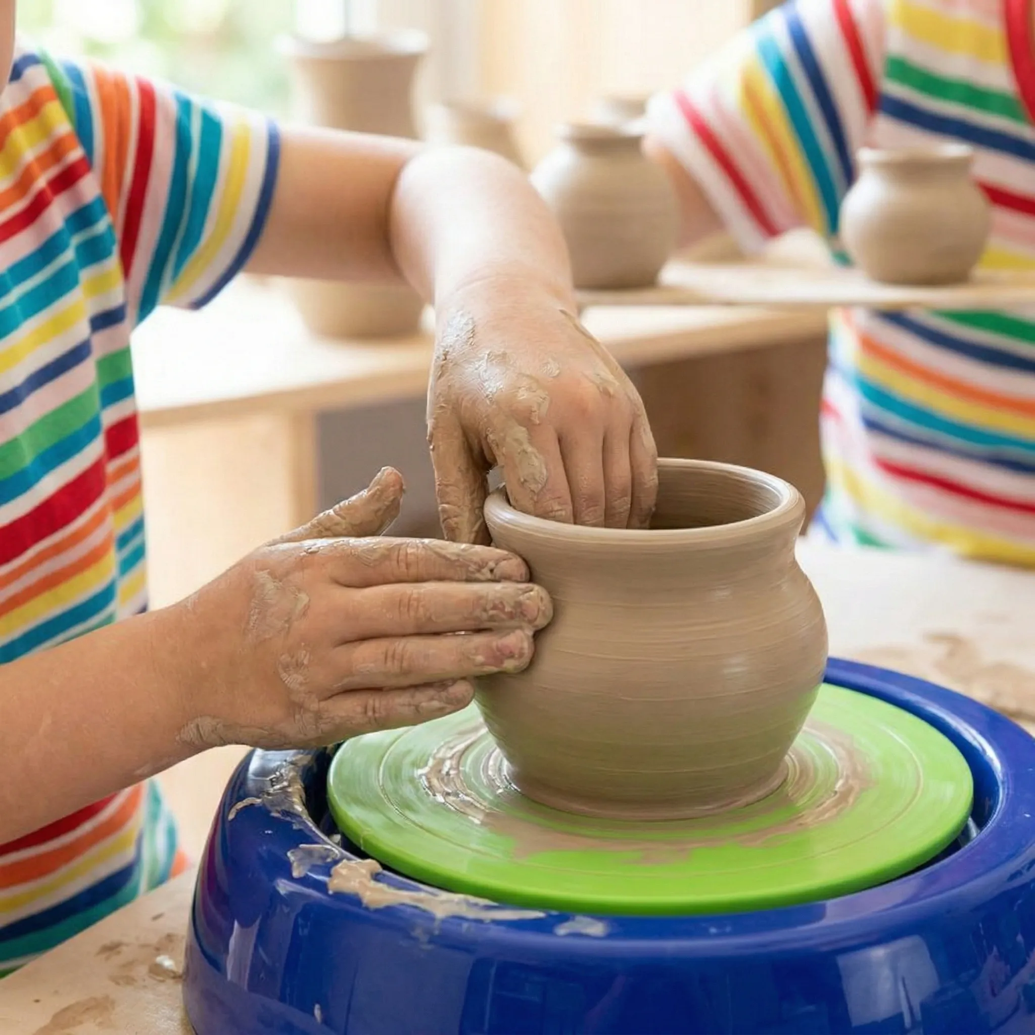 - Îmbunătățește Coordonarea și Motricitatea: Utilizarea roții rotative și a instrumentelor de modelaj necesită o sincronizare precisă între ochi și mână, antrenând motricitatea fină.