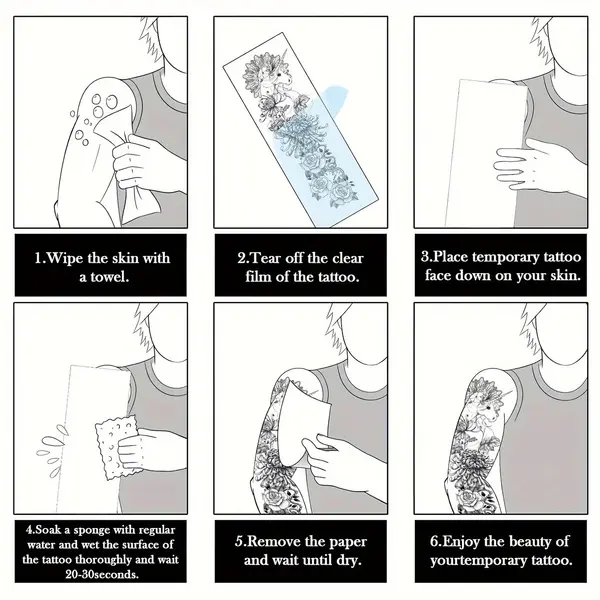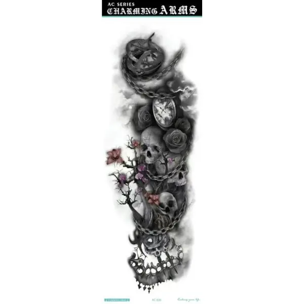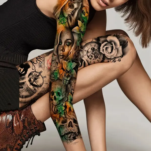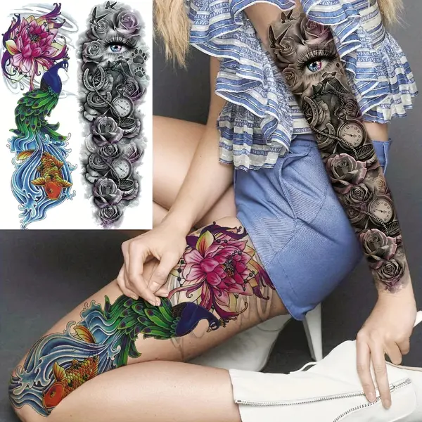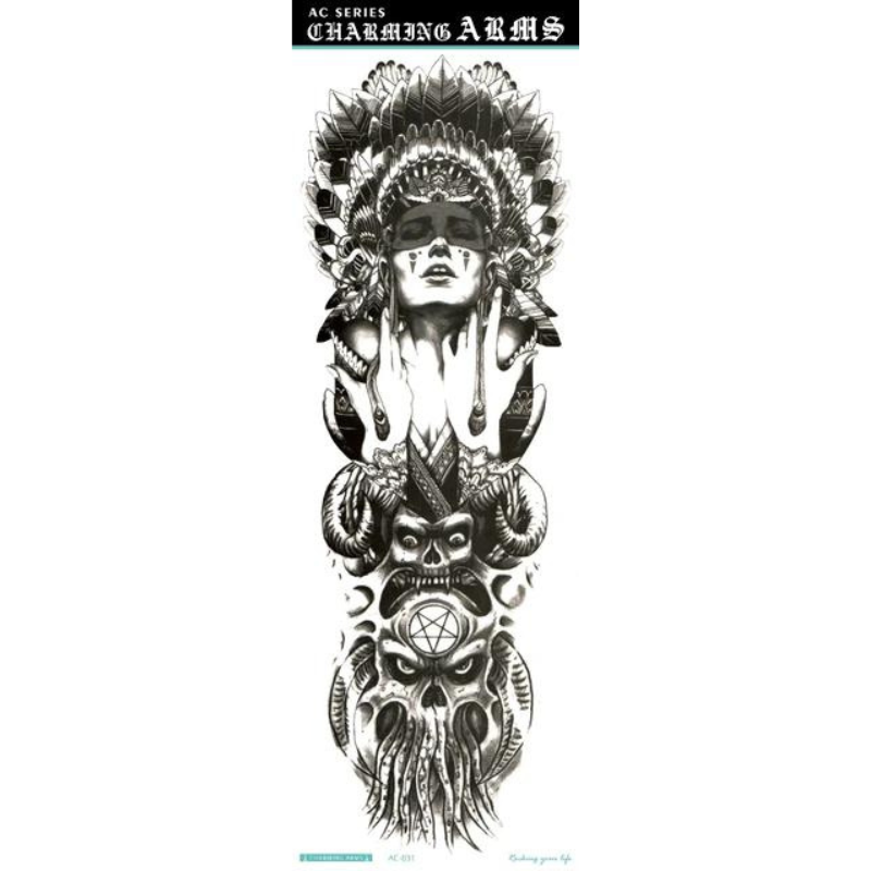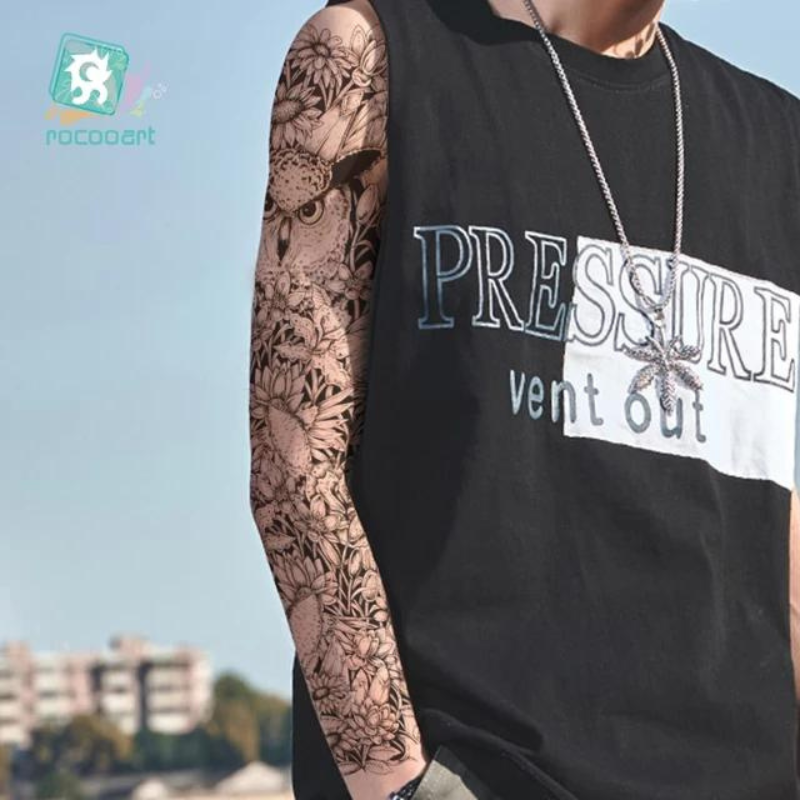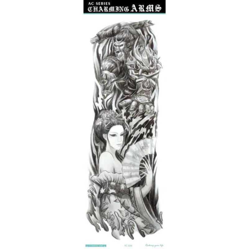 Obțineți un look spectaculos și impunător cu ajutorul acestor tatuaje temporare pentru braț, special concepute pentru a acoperi zone extinse. Cu dimensiuni generoase de 48 x 17 cm, acest tatuaj de tip manșetă (full arm) este ideal pentru a îmbrăca întreg brațul sau piciorul, oferind un aspect ultra-realist, comparabil cu cel al unui tatuaj permanent realizat în salon. Modelele sunt complexe și bogate în detalii, de la compoziții mecanice și geometrice, până la motive cu animale mistice sau elemente tribale.