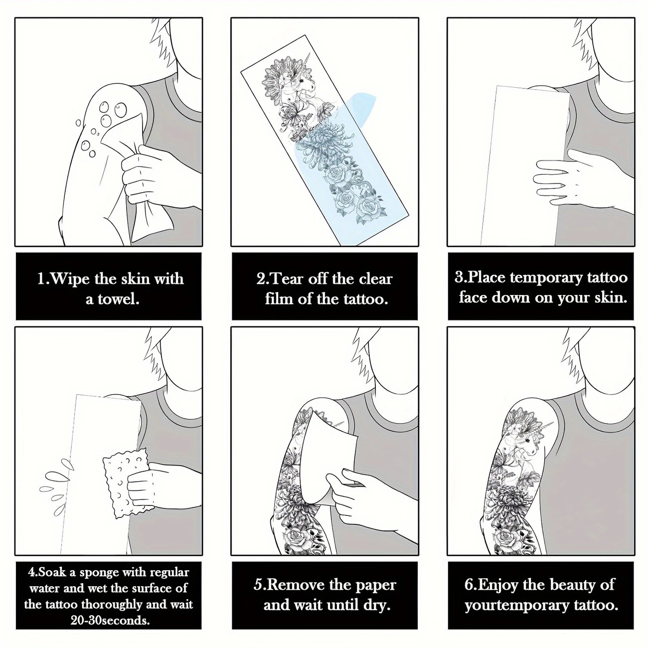 Calitatea superioară a imprimării asigură o aderență perfectă pe piele și o textură care nu jenează. Materialele folosite sunt non-toxice și sigure pentru sănătate, fiind rezistente la apă și transpirație. Aplicarea este surprinzător de simplă: necesită doar apă și câteva zeci de secunde pentru a transfera întregul design pe suprafața dorită. Rezultatul este unul de impact, care poate dura până la 7 zile, fiind soluția ideală pentru festivaluri, ședințe foto, petreceri tematice sau pur și simplu pentru a experimenta un design de mari dimensiuni înainte de a opta pentru varianta definitivă.