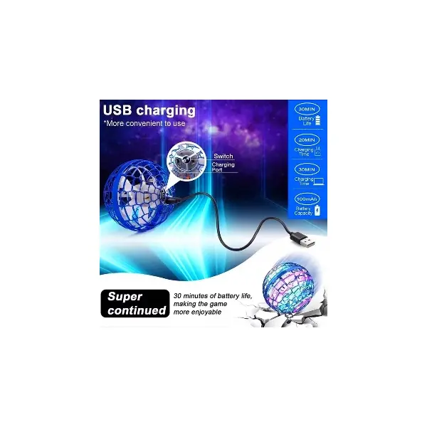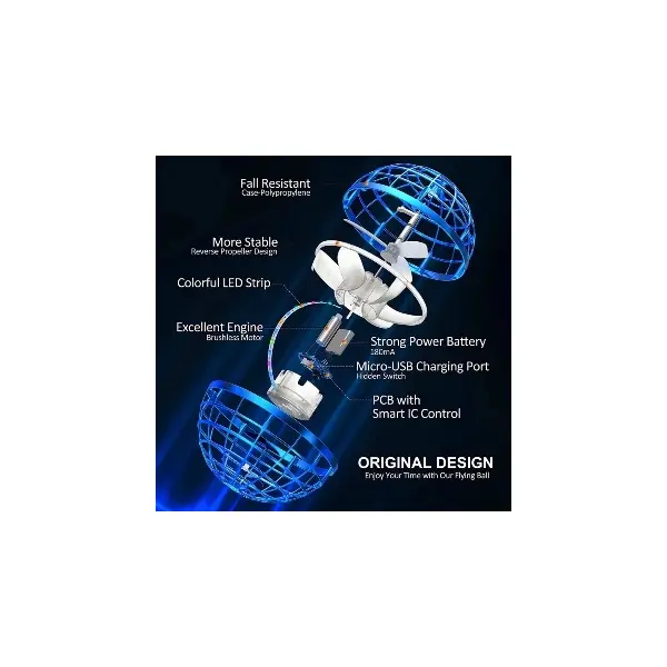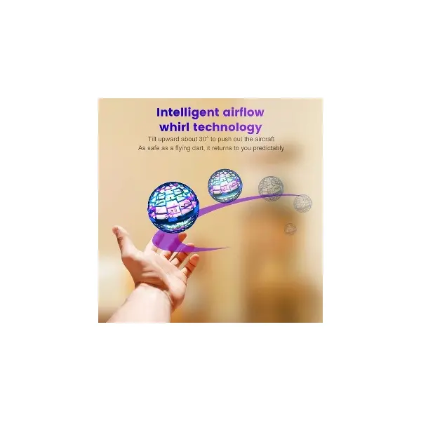 Modul de utilizare este extrem de simplu și intuitiv, fiind accesibil chiar și celor mici sub supraveghere. Tot ce trebuie să faceți este să porniți comutatorul de alimentare, să țineți mingea sus și să o agitați pentru a porni elicea. Distracția adevărată începe cu modul Boomerang: aruncați jucăria într-un unghi specific și urmăriți cum aceasta se întoarce singură spre dumneavoastră, gata să fie prinsă cu o singură mână. De asemenea, mingea se poate roti ultrarapid în timp ce plutește; dacă puneți mâna sub ea, aceasta va levita urmând mișcările palmei, oferindu-vă control total asupra zborului.