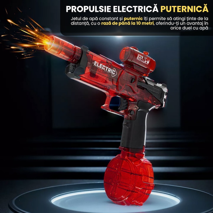 Din punct de vedere tehnic, pistolul funcționează cu o baterie reîncărcabilă, asigurând o autonomie extinsă pentru sesiuni lungi de joacă. Este extrem de ușor de întreținut: după fiecare utilizare, este recomandată golirea completă a rezervoarelor și depozitarea într-un loc uscat pentru a menține integritatea circuitelor electrice. Pentru partenerii noștri din segmentul angro, acest pistol de apă electric reprezintă un produs de succes garantat pentru sezonul estival, combinând tehnologia de ultimă oră cu un preț competitiv și un ambalaj atractiv. Este cadoul perfect care pune în mișcare atât copiii, cât și adulții dornici de răcorire și voie bună.