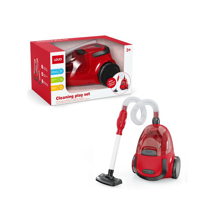 Pentru partenerii comerciali care caută seturi de uz casnic populare, acest produs este disponibil pentru achiziție en-gros, remarcându-se prin funcțiile sale interactive. Aspiratorul LADUO emite sunete realistice de motor, imitând perfect funcționarea unui aparat real, în timp ce luminile integrate adaugă un plus de dinamism jocului. Mai mult, jucăria dispune de o funcție de aspirație ușoară, fiind capabilă să adune biluțe mici de polistiren sau scame ușoare, care pot fi observate rotindu-se în recipientul transparent pentru praf.