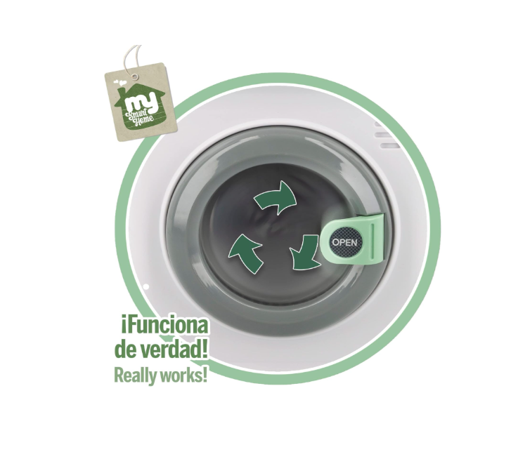 Construcția jucăriei pune accent pe siguranța utilizatorului. Fabricată din plastic de înaltă calitate, non-toxic și rezistent, mașina de spălat are margini rotunjite și o ușă transparentă care se închide ermetic, permițând vizualizarea interiorului în timpul "funcționării". Panoul de control este dotat cu butoane tactile simulate și un buton rotativ pentru selectarea "temperaturii" sau a "programului", oferind o stimulare senzorială excelentă și dezvoltând motricitatea fină a degetelor. Compartimentul pentru detergent este, de asemenea, mobil, oferind micilor utilizatori posibilitatea de a simula întregul proces, de la pregătire până la finalizare.