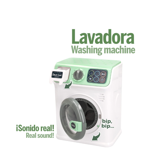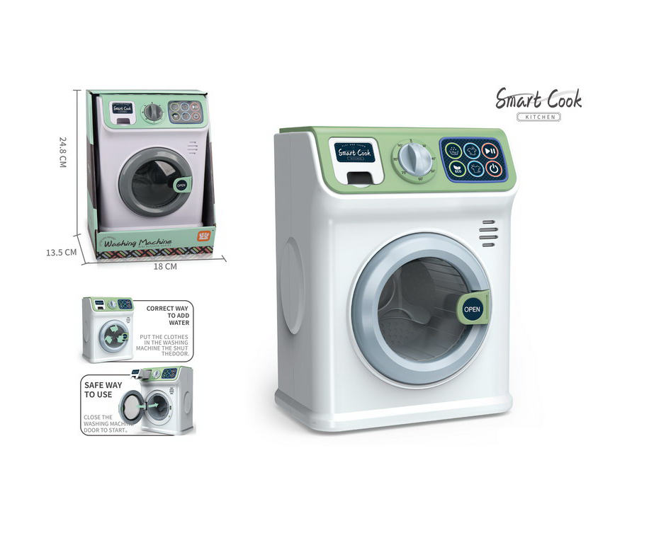Pentru comercianții care doresc să ofere produse calitative din categoria "Home Play", acest model Smart Cook este disponibil acum en-gros, fiind o alegere populară datorită interactivității sale ridicate. Mașina dispune de un tambur rotativ care se activează la apăsarea butonului de pornire, simulând procesul de spălare a hainelor păpușilor. Sunetele realistice de umplere cu apă, centrifugare și finalizare a programului adaugă un strat suplimentar de autenticitate, ajutându-i pe copii să înțeleagă ordinea logică a sarcinilor domestice într-un mod sigur și distractiv.