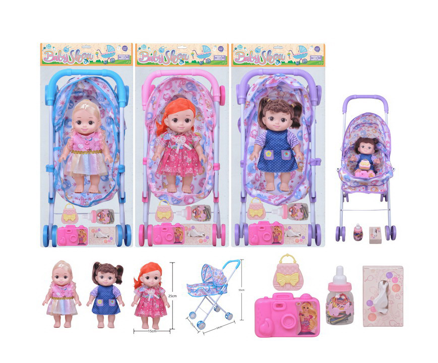 Cadrul landoului este construit din metal rezistent, oferind o stabilitate superioară și o durabilitate crescută față de modelele standard din plastic. Căruciorul dispune de o capotină reglabilă și o husă textilă cu imprimeuri moderne, fiind totodată dotat cu un mecanism de pliere rapidă pentru o depozitare eficientă. Păpușa inclusă are un aspect realist, fiind însoțită de accesorii esențiale precum biberon, suzetă sau tacâmuri, permițându-le copiilor să simuleze întreaga rutină de îngrijire: plimbare, hrănire și somn. Cu o înălțime a mânerului adaptată de 55 cm, acest set este perfect proporționat pentru copii, reprezentând o soluție strategică pentru vânzarea angro datorită prezentării de tip „totul într-un singur pachet”.