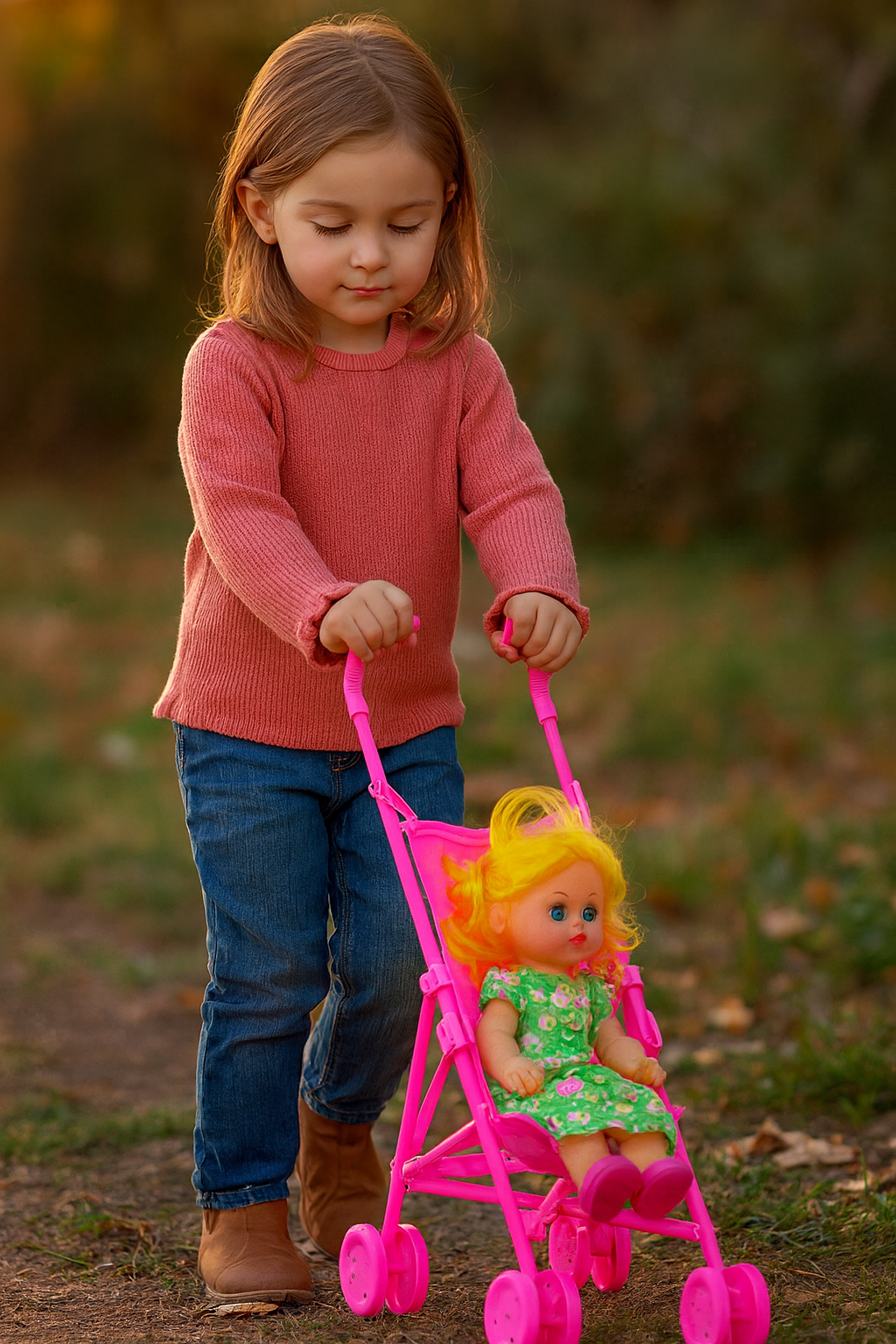 Pentru partenerii noștri en-gros, acest set „2 în 1” reprezintă o valoare excelentă, eliminând necesitatea achiziționării separate a păpușii. Păpușa inclusă are dimensiuni optimizate pentru cărucior, fiind realizată din materiale sigure și având o vestimentație colorată. Structura căruciorului este robustă, fără margini ascuțite, și dispune de un mâner ergonomic adaptat înălțimii copiilor mici.