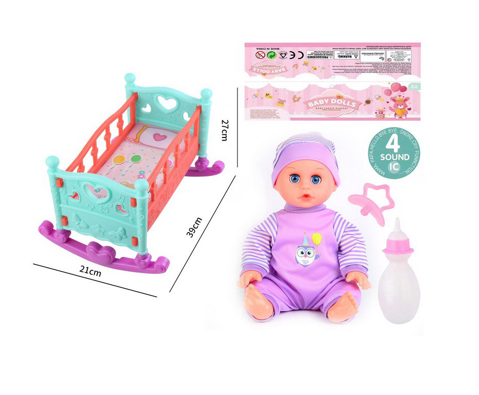 Încurajați instinctele de îngrijire și empatia celor mici cu acest set complet de păpușă bebeluș cu pătuț, un kit de joacă fascinant care simulează ritualul de somn și îngrijire al unui nou-născut. Vedeta setului este păpușa cu trăsături delicate și corp moale, special concepută pentru a fi îmbrățișată. Aceasta vine dotată cu un modul electronic ce emite sunete realiste (gângurit, plâns, râs sau cuvinte simple precum "Mama/Papa"), oferind o experiență de joc interactivă și extrem de captivantă.