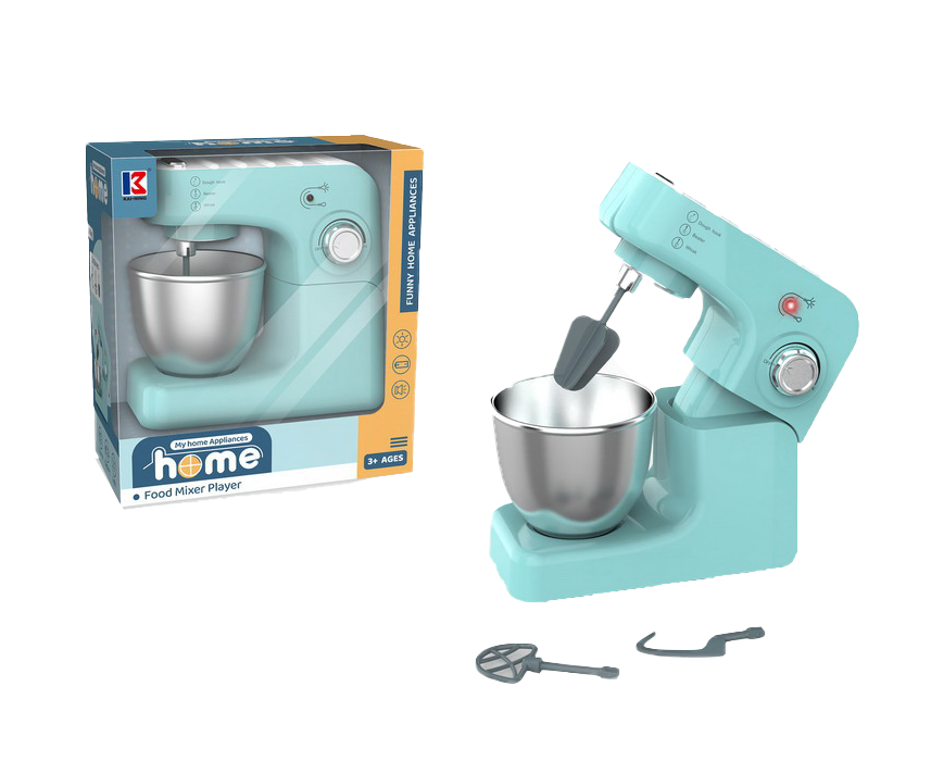 Setul include mai multe accesorii de mixare, precum telul și cârligul pentru amestecare, care se pot atașa și detașa cu ușurință. Bolul este suficient de încăpător pentru a simula prepararea diferitelor rețete imaginare, iar accesoriile completează experiența de joacă, oferind copiilor posibilitatea de a imita activitățile din bucătărie. Acest tip de joc stimulează creativitatea, coordonarea și interesul pentru activitățile practice.