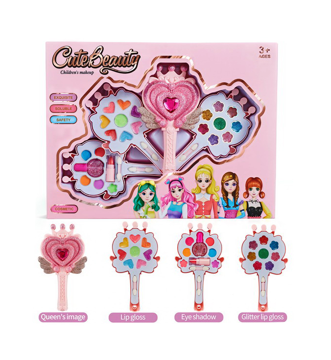 În interiorul trusei sunt incluse mai multe tipuri de farduri colorate, lucioase și mate, glossuri de buze și accesorii de aplicare, toate realizate din materiale sigure pentru joacă. Culorile sunt vii, prietenoase și atrăgătoare, potrivite pentru jocuri de rol, fără a fi agresive vizual. Trusa Cute Beauty este destinată exclusiv utilizării recreative, fiind un produs tip jucărie, nu un produs cosmetic profesional.