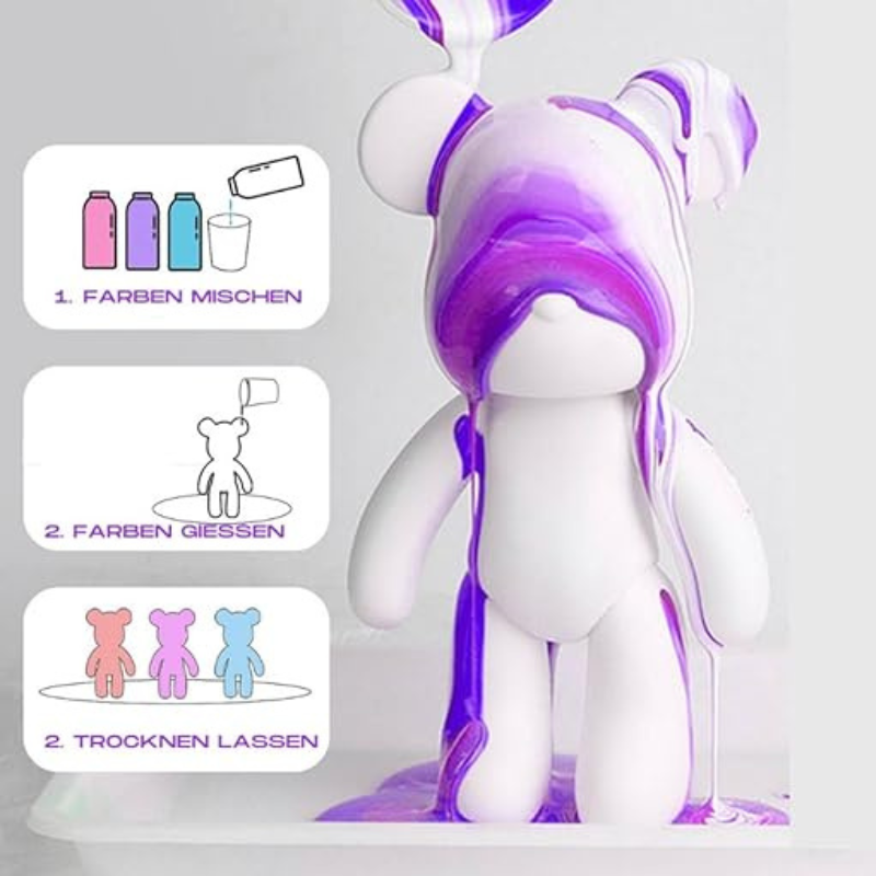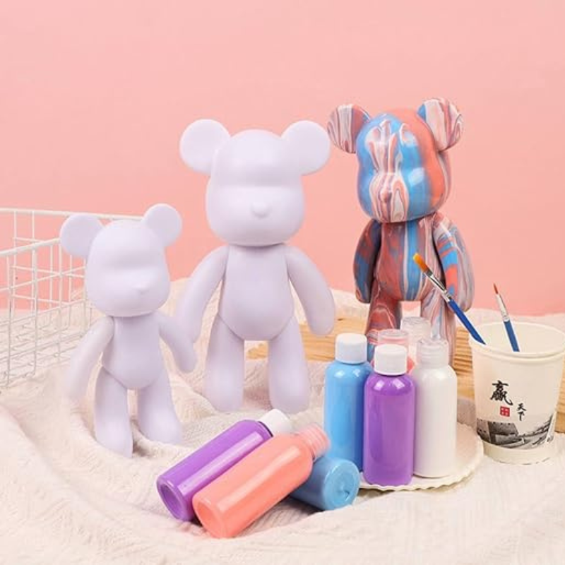 Designul modern și minimalist al ursulețului permite personalizarea completă: de la modele abstracte și graffiti, până la detalii realiste sau culori uniforme vibrante. Este piesa perfectă pentru atelierele de creație (Fluid Art sau pictură pe obiecte), fiind un suport excelent pentru exprimarea talentului artistic. Odată finalizat, ursulețul de 23 cm devine un obiect de decor contemporan, ideal pentru biblioteci, birouri sau camere de copii, oferind satisfacția unei opere de artă create manual.