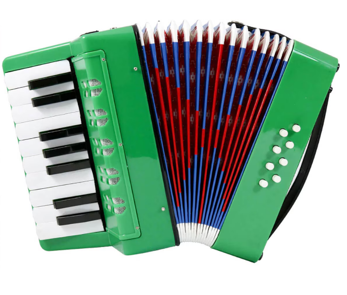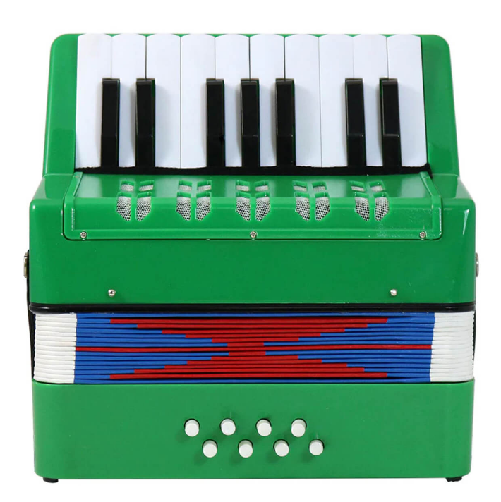 Introdu-i pe cei mici în lumea magică a sunetelor cu acest acordeon pentru copii cu clape, un instrument muzical captivant, proiectat special pentru a stimula creativitatea și coordonarea celor mici. Într-o nuanță veselă de verde vibrant, acest acordeon nu este doar o jucărie, ci un instrument educativ care îi ajută pe copii să descopere ritmul, melodia și bazele teoriei muzicale într-un mod distractiv și interactiv. Cu o construcție robustă și un design ergonomic, acesta este partenerul ideal pentru micii muzicieni care își doresc să exploreze un nou hobby creativ sau să își impresioneze familia cu primele lor compoziții.