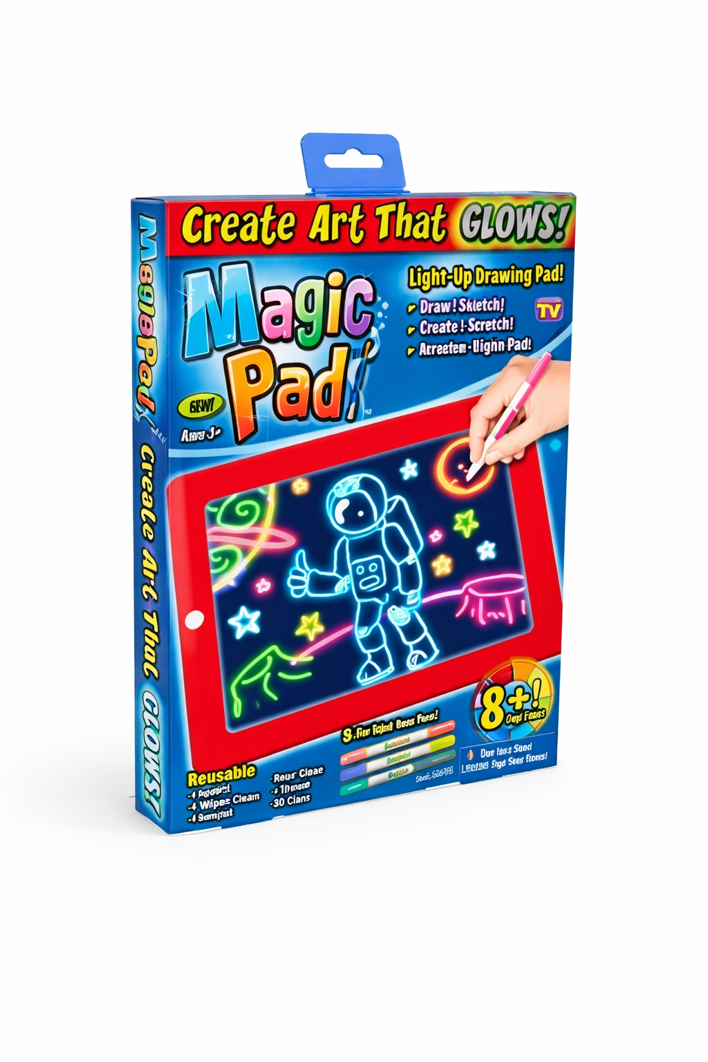 Construită din plastic ABS durabil și rezistent la șocuri, tableta este sigură pentru utilizarea zilnică de către copii. Suprafețele sunt ușor de șters cu laveta inclusă, permițând refolosirea infinită a ecranului. Markerele speciale incluse sunt non-toxice și lavabile, asigurând o experiență de utilizare fără griji pentru părinți. Magic Pad reprezintă cadoul perfect pentru orice ocazie, reușind să combine tehnologia modernă cu plăcerea clasică a desenului, oferind în același timp o bază solidă pentru dezvoltarea coordonării ochi-mână și a gândirii spațiale a micii generații de artiști.