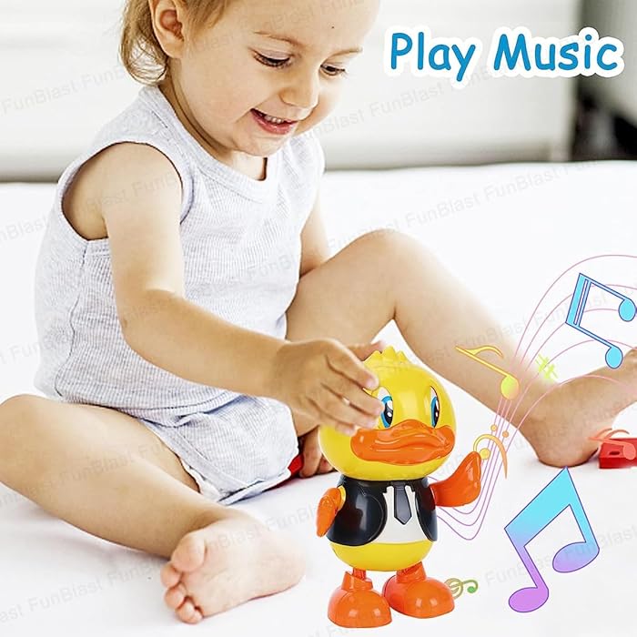 Aduceți zâmbetul pe buzele celor mici cu această rață dansatoare cu lumini și muzică, una dintre cele mai vesele și interactive jucării ale momentului. Concepută pentru a capta atenția bebelușilor și a copiilor mici, această rățușcă simpatică transformă camera de joacă într-o adevărată discotecă. Cu mișcări haioase de balans și brațe care se mișcă în ritmul melodiilor, jucăria încurajează copiii să se miște, să danseze și să își dezvolte abilitățile motorii prin imitație.