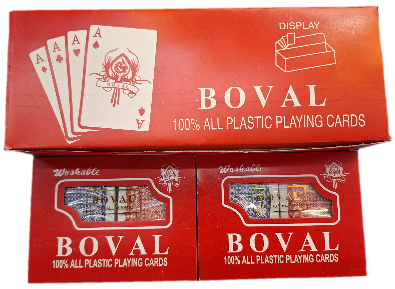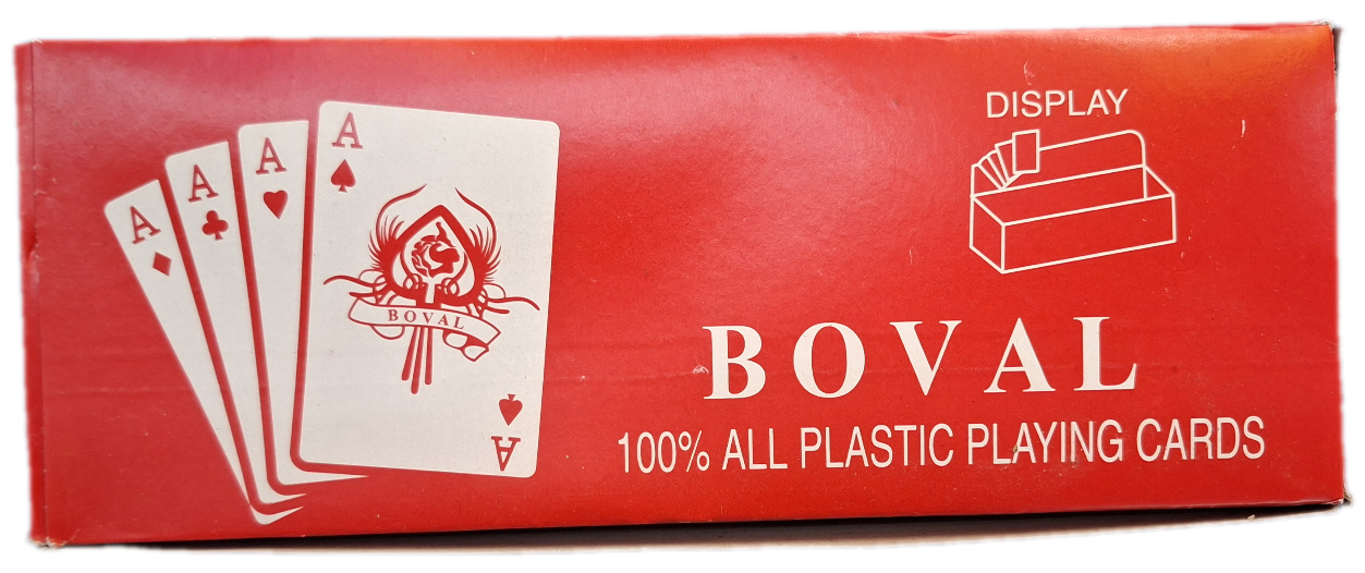 Pentru partenerii noștri din segmentul angro, acest set vine ambalat într-o cutie de tip display ce conține 12 perechi de cărți de joc. Prezentarea este ideală pentru expunerea directă la raft în magazine, librării sau chioșcuri, oferind un aspect organizat și profesional. Materialul rezistent și calitatea finisajelor transformă cărțile BOVAL într-un produs cu o durată de viață ridicată, reprezentând o investiție excelentă atât pentru jucătorii pasionați, cât și pentru revânzători.