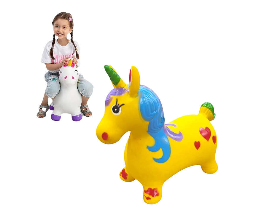 Adu o rază de soare și multă veselie în camera copilului tău cu acest unicorn gonflabil din cauciuc, disponibil acum într-o nuanță strălucitoare de galben. Această jucărie interactivă a fost concepută special pentru a oferi micuților o modalitate activă și distractivă de a-și consuma energia, fiind mult mai mult decât un simplu obiect de decor. Unicornul funcționează ca un suport de sărit (jumper), ajutând la dezvoltarea armonioasă a musculaturii picioarelor, la îmbunătățirea echilibrului și a coordonării motrice. Culoarea sa vibrantă stimulează simțul vizual și invită la joacă, transformând orice spațiu într-un tărâm plin de magie și creativitate.