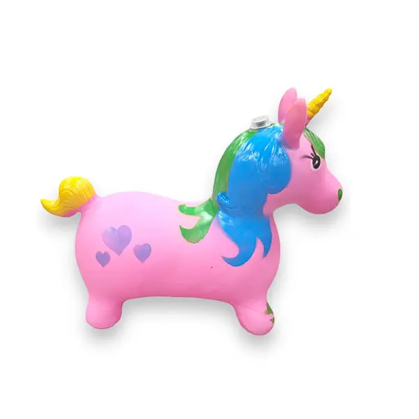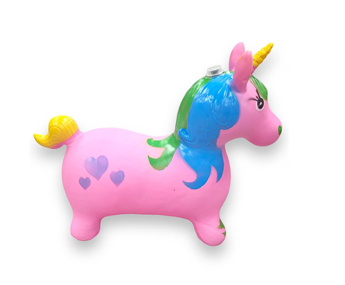 Durabilitatea este trăsătura principală a acestui unicorn de dimensiuni generoase. Jucăria este fabricată dintr-un cauciuc dens și rezistent, de înaltă calitate, capabil să facă față utilizării intense atât în interiorul locuinței (pe covoare sau parchet), cât și în spații exterioare precum grădina sau locurile de joacă pe gazon. Materialul este non-toxic, sigur pentru contactul prelungit cu pielea și oferă o aderență optimă, permițându-le copiilor să se prindă ferm de urechile unicornului în timp ce sar. Cu dimensiuni de 50 cm înălțime și 60 cm lungime, produsul asigură o bază stabilă, prevenind răsturnările accidentale.