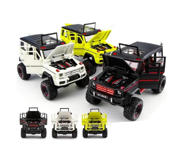 Mașina metal SUV Clasa G500 1:24 este o jucărie en-gros destinată comercianților, magazinelor de jucării și revânzătorilor care caută produse atractive, rezistente și ușor de vândut. Modelul reproduce fidel designul impunător al unui SUV de clasă premium, cu detalii realiste și finisaje atent lucrate, fiind realizat din metal turnat sub presiune, completat cu elemente din plastic rezistent.
