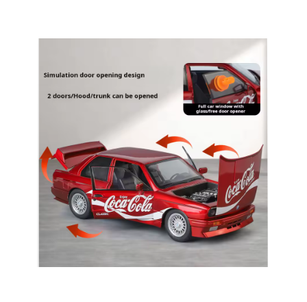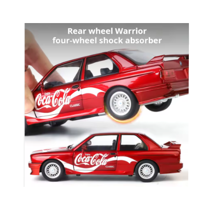 Mașina metalică BMW M3 Coca-Cola scara 1:24 este un produs spectaculos, creat pentru pasionații de mașini, colecționari și comercianți care caută articole atractive pentru vânzare en-gros. Inspirată din celebrul model sport BMW M3 și personalizată cu grafica clasică Coca-Cola, această mașinuță metalică impresionează prin detalii realiste, finisaje de calitate și o prezentare premium, ideală pentru raft sau vitrină.