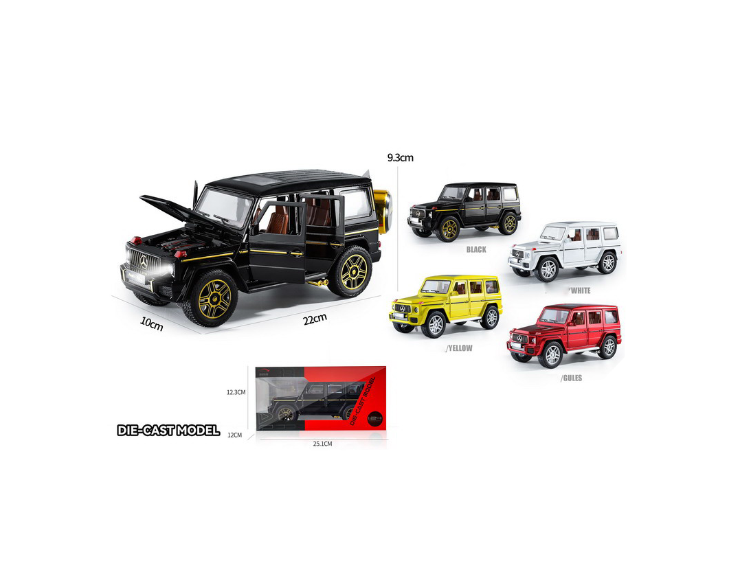 Prin combinația dintre materialele rezistente, funcțiile interactive și aspectul premium, mașina metalică G63 1:24 reprezintă un produs competitiv pentru piața en-gros, ușor de integrat în portofoliul furnizorilor care comercializează jucării și articole recreative.