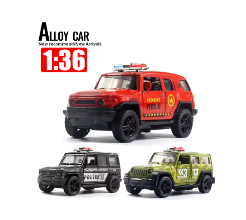 Setul de mașini metalice de urgență scara 1:36, disponibil în variante Poliție, Pompieri și Armată, este un produs conceput pentru comercializare en-gros, destinat magazinelor de jucării, distribuitorilor și comercianților care caută articole atractive, rezistente și ușor de vândut. Aceste modele reproduc vehicule de intervenție într-o formă robustă, cu caroserie metalică și detalii vizuale clare, adaptate gusturilor copiilor pasionați de mașini și jocuri de rol.