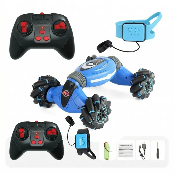 - Dublu Control Revoluționar: Ai libertatea de a alege! Folosește telecomanda clasică de 2.4 GHz pentru o manevrare precisă sau pune-ți brățara inteligentă și controlează mașina prin simple mișcări ale mâinii în aer. Este intuitiv, modern și extrem de distractiv!