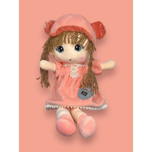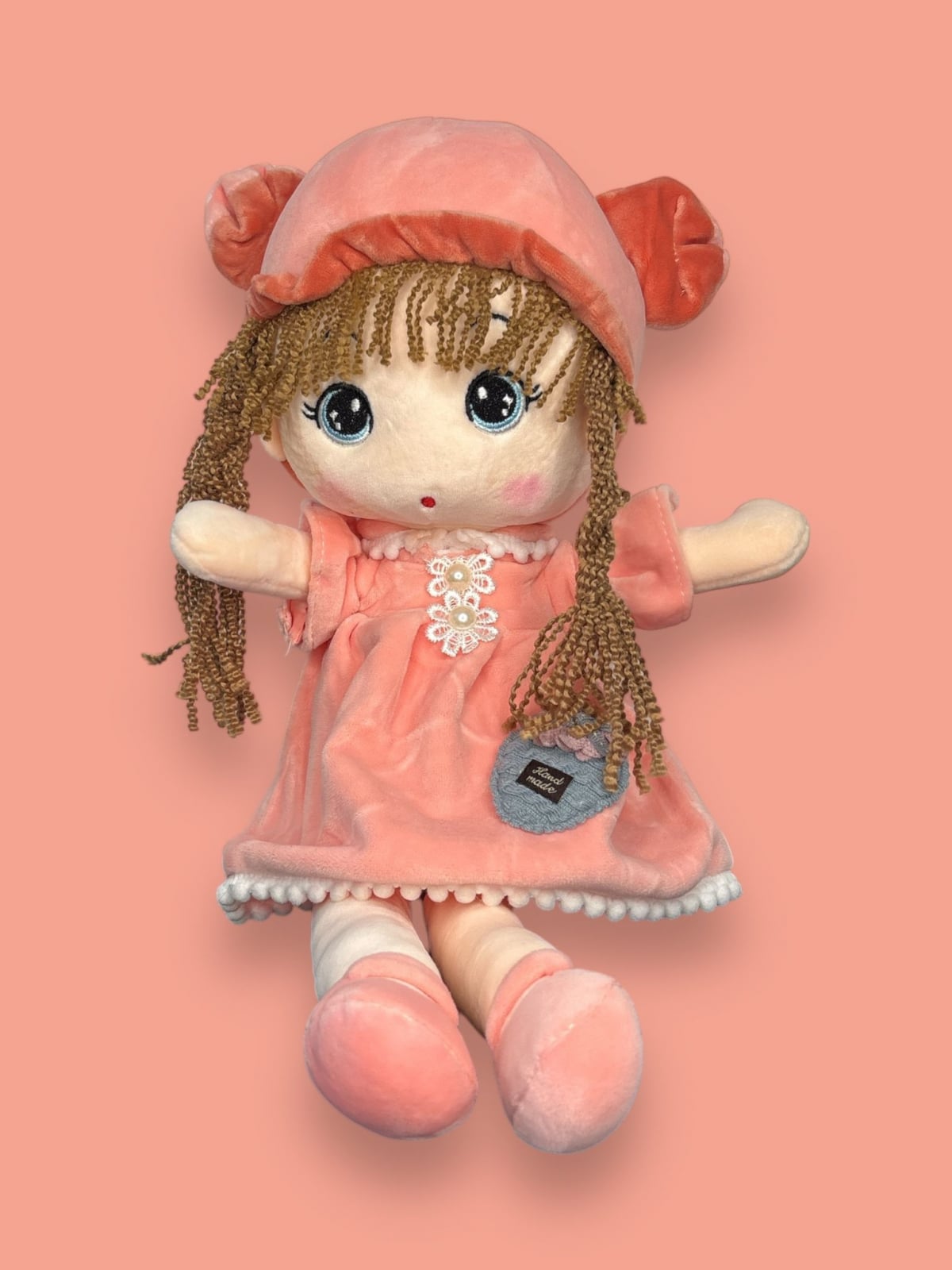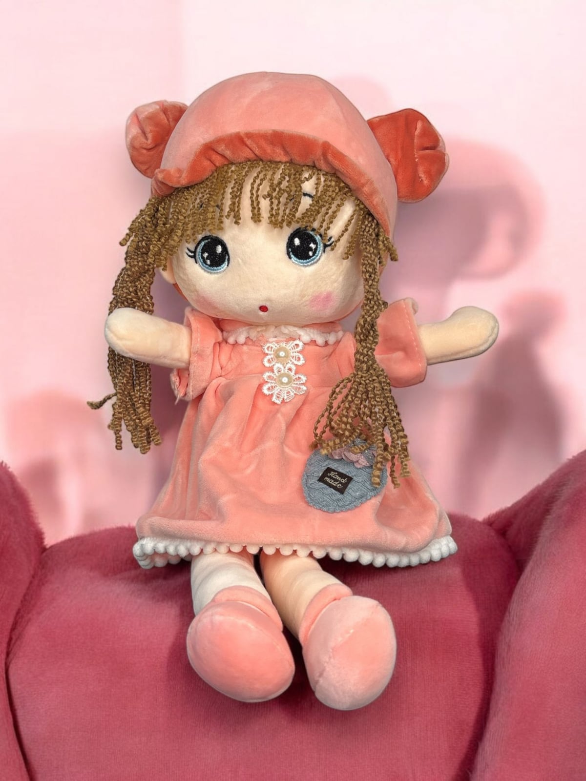 Materialul din care este confecționată păpușa este un pluș de calitate premium, selectat special pentru textura sa moale și fină, fiind extrem de plăcut la atingere. Această delicatețe o face ideală pentru îmbrățișările lungi, oferind copilului o senzație de siguranță și calm. Dimensiunea de 50 cm este perfectă pentru a fi ținută în brațe în timpul somnului sau pentru a trona ca un decor special pe patul din camera copilului. Umplutura moale și finisajele de înaltă calitate garantează durabilitatea jucăriei, chiar și în urma utilizării zilnice intense, rămânând la fel de pufoasă și primitoare.