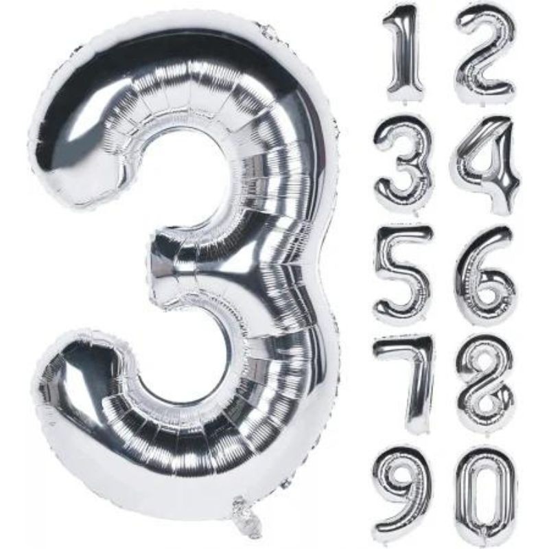 Balon Cifră 3 din Folie, 68 × 53 cm, Argintiu