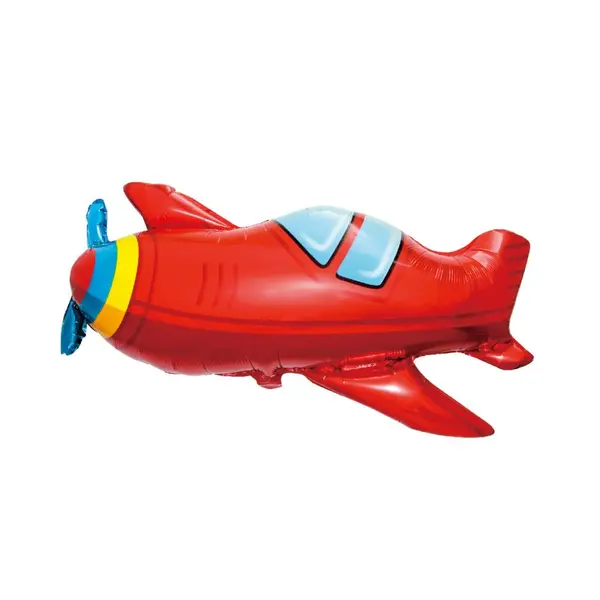 Designul, vizibil în imaginea de prezentare, redă un avion de un roșu intens, dotat cu o elice albastră în față și accente galbene și albastre care îi conferă un aspect dinamic și jucăuș. Silueta aerodinamică și ferestrele de cabină bleu sunt imprimate cu precizie pe folia de aluminiu de înaltă calitate, oferind un luciu metalizat ce reflectă lumina și adaugă profunzime culorilor. Datorită formatului său generos de 85 x 45 cm, acest balon va fi cu siguranță punctul central al oricărui aranjament festiv, fiind ideal pentru decorarea spațiilor de photo corner sau pentru a fi suspendat „în zbor” deasupra zonei de candy bar.