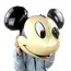 Analizând detaliile vizuale, se observă designul tridimensional fidel personajului, cu urechile negre mari și rotunde clar definite. Trăsăturile feței sunt imprimate cu o precizie deosebită, prezentând un Mickey Mouse zâmbitor și expresiv, pe o nuanță naturală de bej. Materialul premium reflectă lumina într-un mod spectaculos, oferind reflexii metalizate care subliniază calitatea produsului.