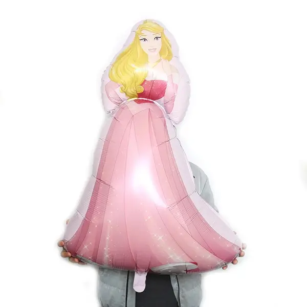 Analizând detaliile vizuale, balonul redă silueta unei prințese clasice, cu păr lung blond și o coroană aurie discretă. Elementul spectaculos este rochia amplă, realizată în nuanțe de roz vibrant și pastel, decorată cu detalii grafice ce simulează sclipiciul și pliurile fine ale materialului prețios. Suprafața metalizată de înaltă calitate oferă o strălucire aparte, făcând ca această figurină de 85 x 60 cm să radieze sub luminile de petrecere. Materialul rezistent tip mylar garantează că prințesa își va păstra forma impecabilă pe parcursul întregii festivități.