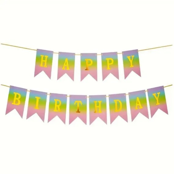 Transformați orice spațiu într-un cadru festiv și plin de veselie cu ajutorul acestei ghirlande decorative pentru petrecere. Compusă dintr-o serie de stegulețe cu dimensiuni individuale de 16.5 x 12 cm, această decorațiune este elementul esențial pentru aniversări, botezuri, petreceri tematice sau evenimente corporate, oferind un fundal dinamic și colorat.
