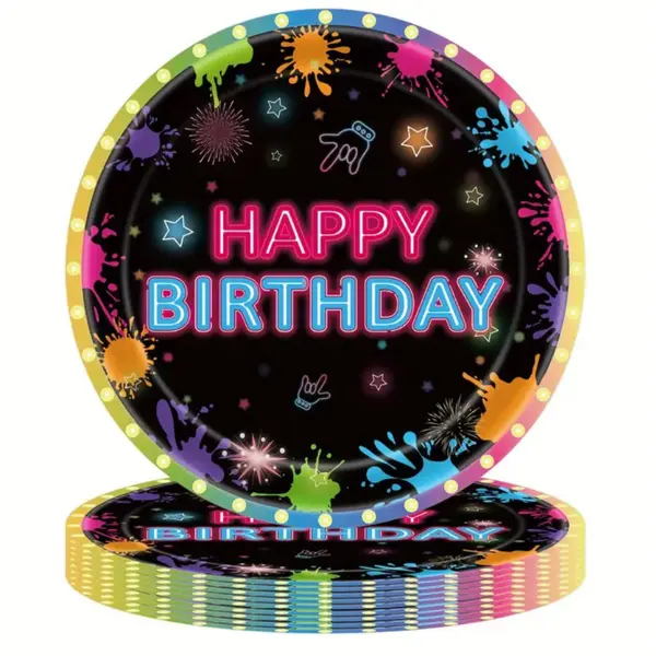 Aceste farfurii aniversare sunt potrivite pentru utilizare la petreceri de zi de naștere pentru copii, adolescenți sau adulți, fiind un accesoriu indispensabil pentru mesele festive. Imprimeurile colorate și mesajul „Happy Birthday” sunt ușor de recunoscut și apreciate de publicul larg, ceea ce face produsul ușor de promovat și de vândut.
