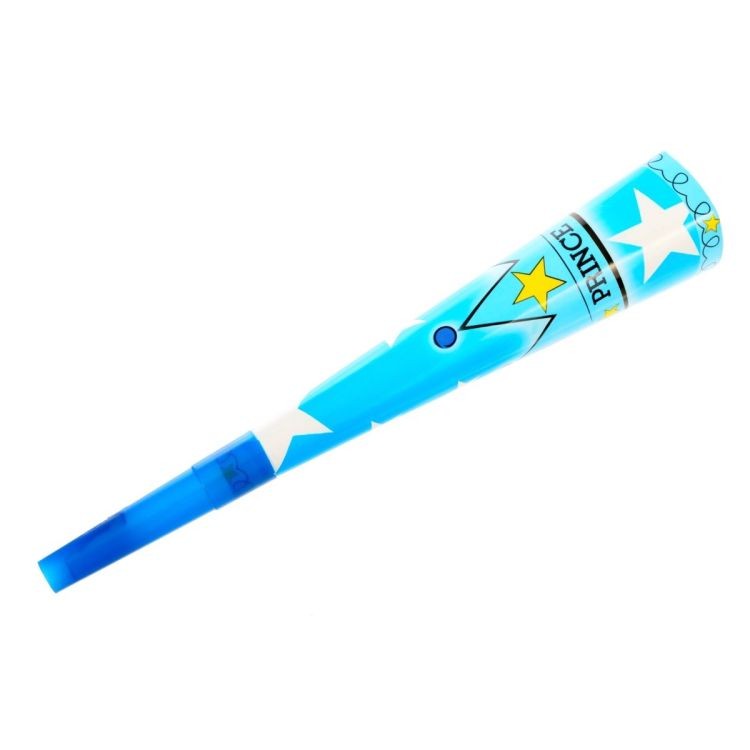 Designul este unul atractiv, cu imprimeuri multicolore, modele jucăușe și elemente grafice specifice petrecerilor: steluțe, baloane, mesaje festive și forme animate. Fiecare trompetă din set are un model diferit, ceea ce adaugă varietate și crește atractivitatea produsului pentru copii. Culorile vii sunt atent alese pentru a ieși în evidență în vitrine sau pachete promoționale.