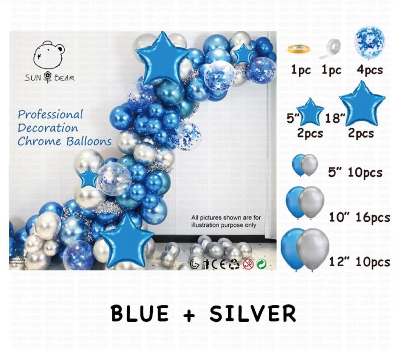 Setul conține baloane în dimensiuni variate, atent alese pentru a crea profunzime și volum arcadei. Baloanele de dimensiuni mici sunt ideale pentru completarea spațiilor și pentru detalii fine, în timp ce baloanele medii și mari formează structura principală a arcadei. Accentele metalizate argintii adaugă contrast și eleganță, transformând decorul într-un punct central de atracție.