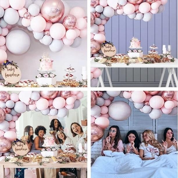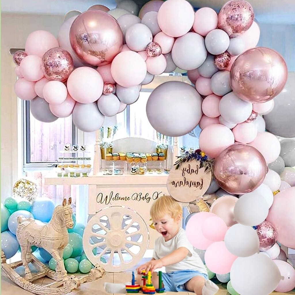 Arcada realizată cu acest set este ideală pentru baby shower, aniversări copii, botez, petreceri tematice, decor candy bar sau fundaluri foto. Combinația de roz pastel, albastru deschis și auriu metalizat creează un decor rafinat, potrivit atât pentru evenimente elegante, cât și pentru petreceri vesele, pline de culoare. Baloanele de dimensiuni diferite oferă profunzime și dinamism, rezultatul final fiind un decor profesionist, chiar și atunci când este montat de persoane fără experiență.