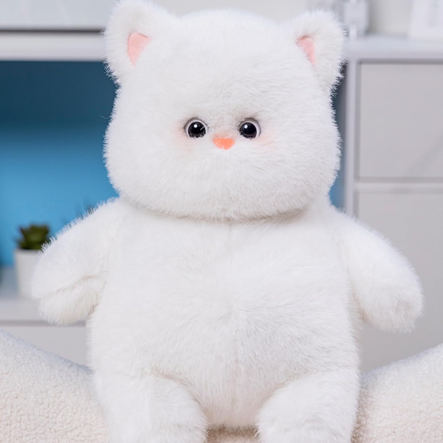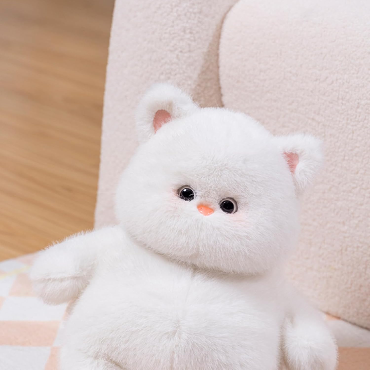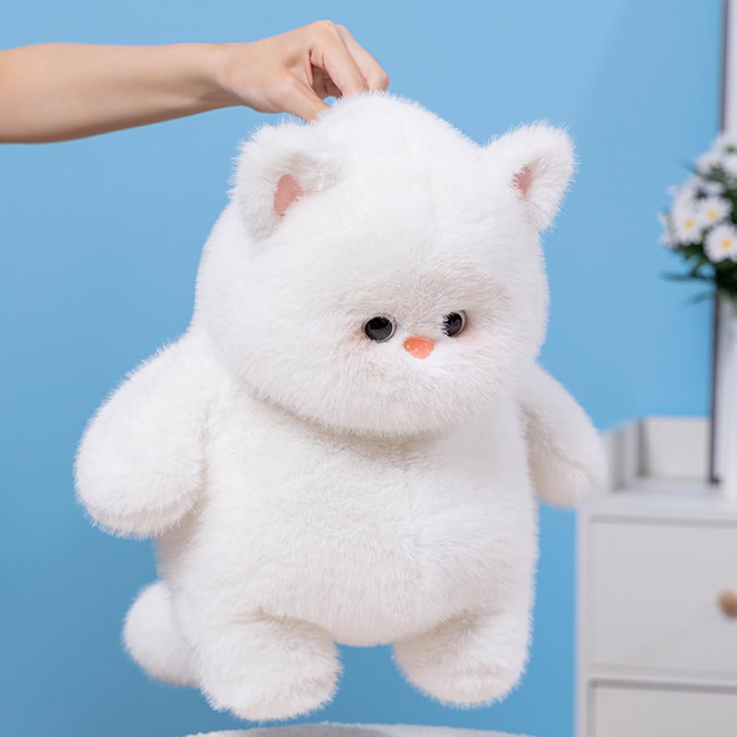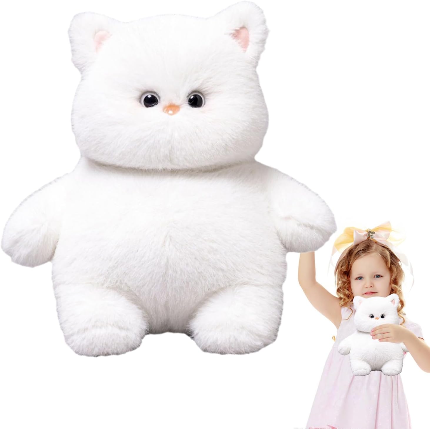 Jucăria are o înălțime de 22 cm, fiind dimensiunea ideală pentru a fi purtată peste tot, de la plimbările în parc până la drumurile lungi cu mașina. Analizând detaliile estetice, pisicuța dispune de ochi strălucitori și un botic delicat, brodat cu grijă, pentru a elimina orice risc de accidentare. Umplutura este realizată din puf siliconat de înaltă calitate, care își păstrează forma în timp, chiar și după spălări repetate. Designul său clasic și elegant o face potrivită nu doar ca jucărie, ci și ca element decorativ în camerele amenajate cu stil. Este cadoul perfect pentru iubitorii de animale, simbolizând delicatețea și prietenia.