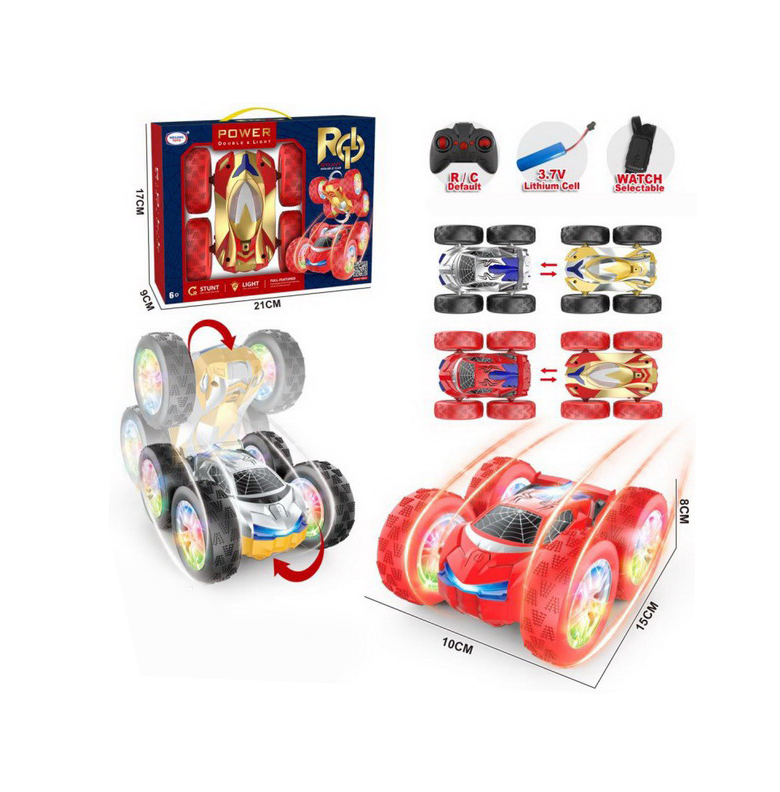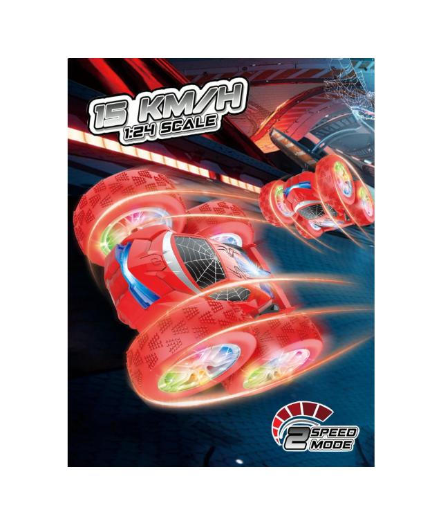 Pregătiți-vă pentru spectacol cu această mașină cu telecomandă Stunt Car, proiectată special pentru a executa cele mai spectaculoase acrobații. Realizat la o scară de 1:24, acest vehicul compact dar extrem de agil este capabil să atingă o viteză de până la 15 km/h, oferind o experiență de control dinamică și plină de adrenalină. Datorită designului său special, mașina poate efectua rotiri complete de 360 de grade și răsturnări uluitoare, continuând să ruleze pe ambele fețe ale caroseriei.