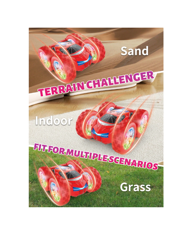 Echipată cu roți din cauciuc moale, cu profil antiderapant, mașina Stunt Car este ideală pentru utilizarea pe diverse suprafețe, de la podele netede la covoare sau teren exterior ușor. Vehiculul are o lungime de aproximativ 16 cm, fiind foarte ușor de manevrat chiar și în spații restrânse. Un mare avantaj este dotarea cu un acumulator de 3.7V, reîncărcabil prin USB, ceea ce elimină necesitatea înlocuirii frecvente a bateriilor și asigură o durată de viață prelungită a jucăriei. Este cadoul perfect pentru copiii care iubesc viteza și cascadoriile, stimulându-le reflexele și coordonarea într-un mod interactiv.