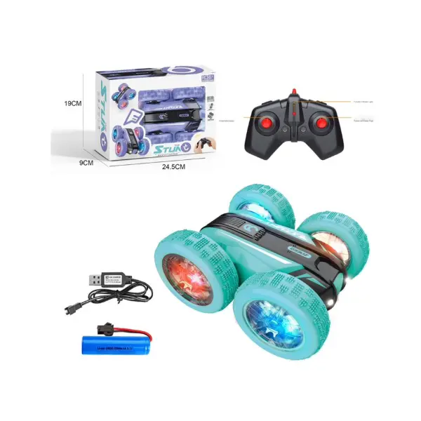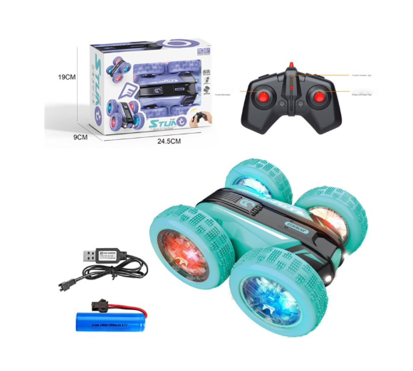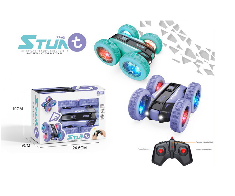 Mașina cu telecomandă Stunt Car 2.4GHz cu rotație 360° este un produs destinat comercializării en-gros, conceput pentru joacă dinamică și spectaculoasă. Acest tip de jucărie este potrivit pentru comercianți care doresc să ofere mașini cu telecomandă atractive, cu funcții vizuale și mișcări speciale, adaptate cerințelor actuale din categoria jucăriilor interactive pentru copii.