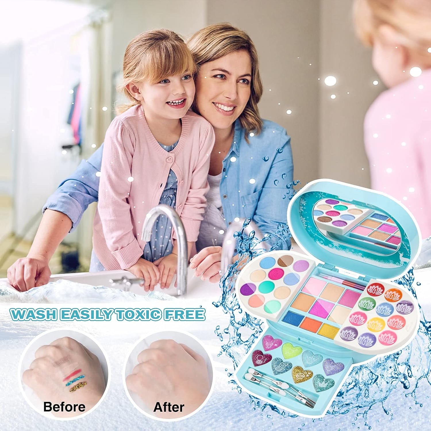 Produsele cosmetice din interior sunt lavabile cu apă, aspect evidențiat clar în materialele vizuale, fiind ușor de îndepărtat după utilizare. Acest lucru face trusa potrivită pentru utilizare frecventă în siguranță, în cadrul jocurilor imaginative sau al petrecerilor tematice.