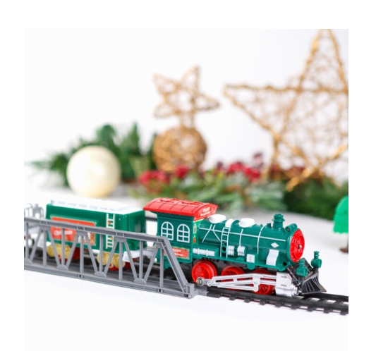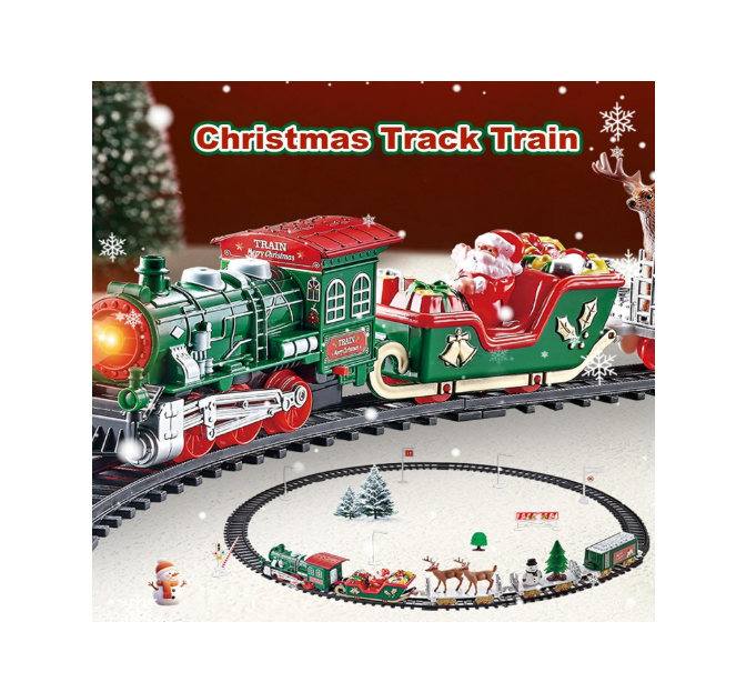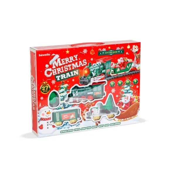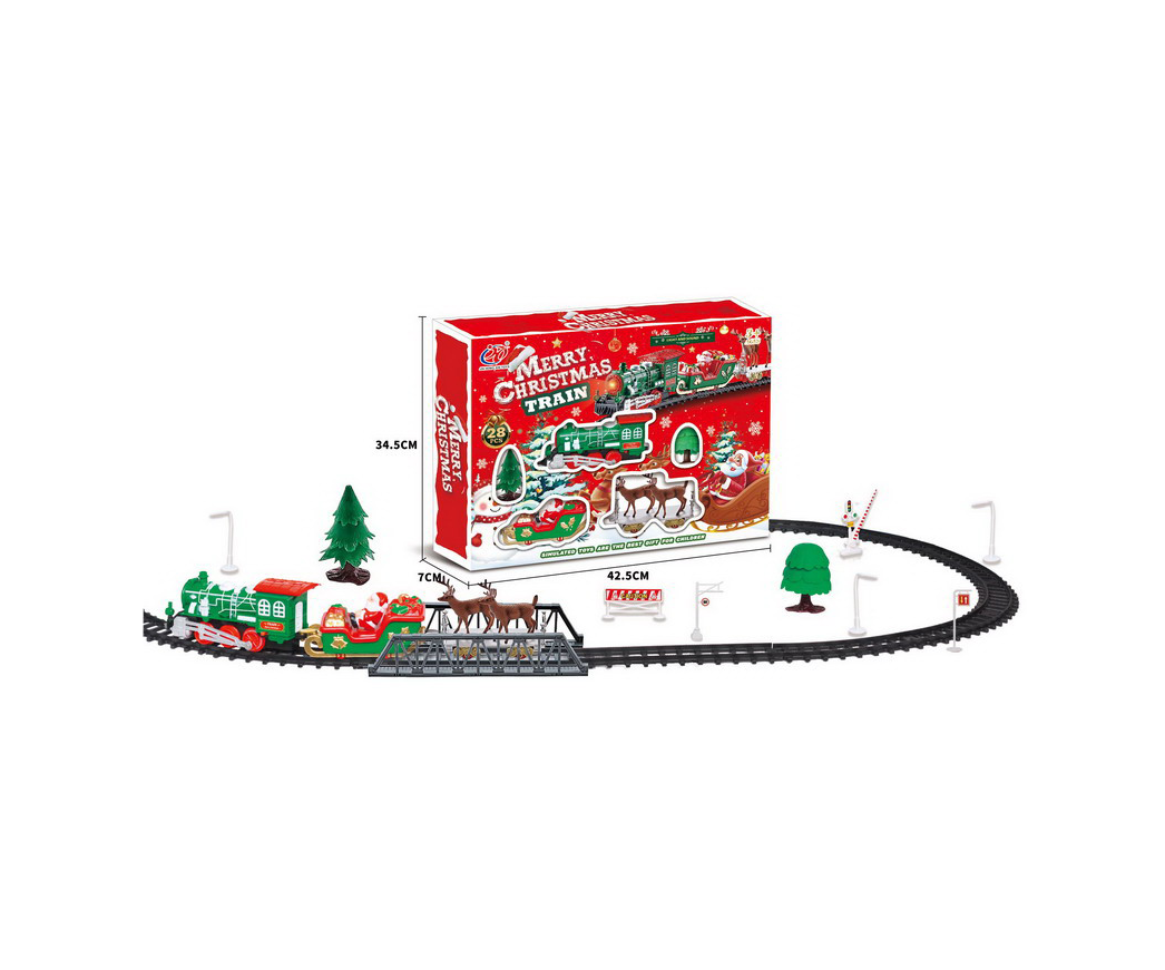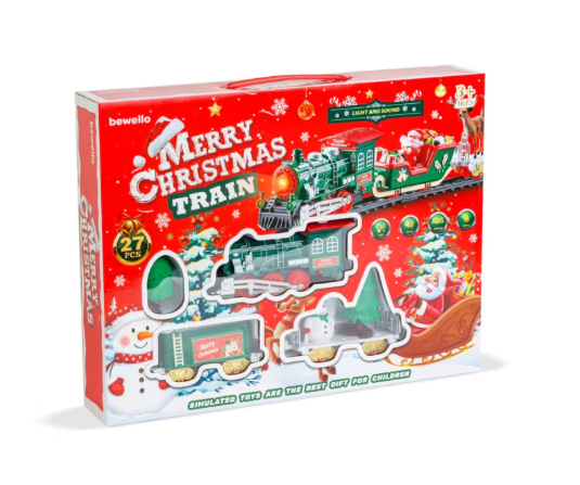 Trenul de Crăciun muzical cu LED-uri este o jucărie decorativă și interactivă, concepută special pentru perioada sărbătorilor, ideală pentru comercializare en-gros către magazine de jucării, retaileri sezonieri, florării, magazine de cadouri și puncte de vânzare cu specific festiv. Setul recreează atmosfera magică a Crăciunului printr-un design tematic atent finisat, culori tradiționale roșu și verde, efecte luminoase LED și sunete muzicale care captează atenția copiilor și adulților deopotrivă.
