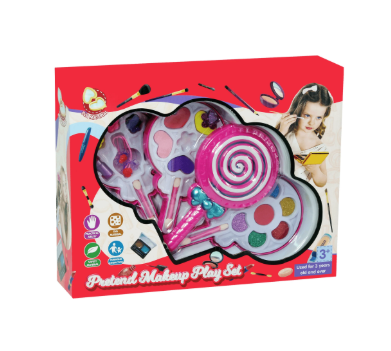 Trusa de machiaj pentru fetițe în formă de acadea este un produs dedicat vânzării en-gros, conceput special pentru magazine de jucării, buticuri de cadouri, standuri sezoniere și comercianți care caută articole atractive, colorate și ușor de vândut. Designul original în formă de acadea captează imediat atenția copiilor, transformând joaca de rol într-o experiență creativă și distractivă.