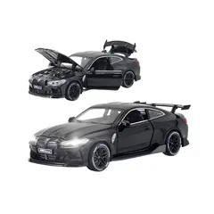 Machetă metalică BMW M4 detaliată, scara 1:24 (aproximativ 20 cm). Dispune de deschidere completă (uși, capotă, portbagaj), lumini LED și sunete realiste de motor și claxon. Un produs premium de colecție, disponibil la preț en-gros.