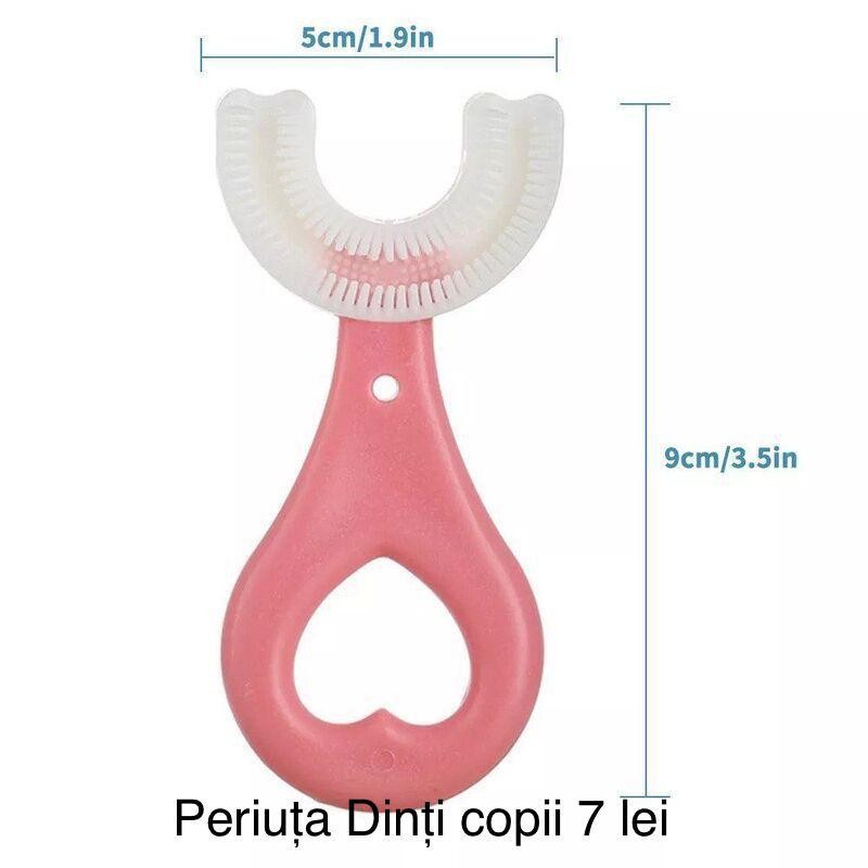 Transformați spălatul pe dinți dintr-o corvoadă într-o activitate distractivă și eficientă cu ajutorul periuței de dinți circulare în formă de U. Special concepută pentru copiii cu vârste cuprinse între 2 și 6 ani, această periuță revoluționară se adaptează perfect anatomiei cavității bucale a celor mici, asigurând o curățare completă la 360°. Datorită capătului moale din silicon, periuța curăță simultan toate fețele dinților și masează gingiile delicate, fiind ideală pentru copiii care încă învață mișcările corecte de periaj.