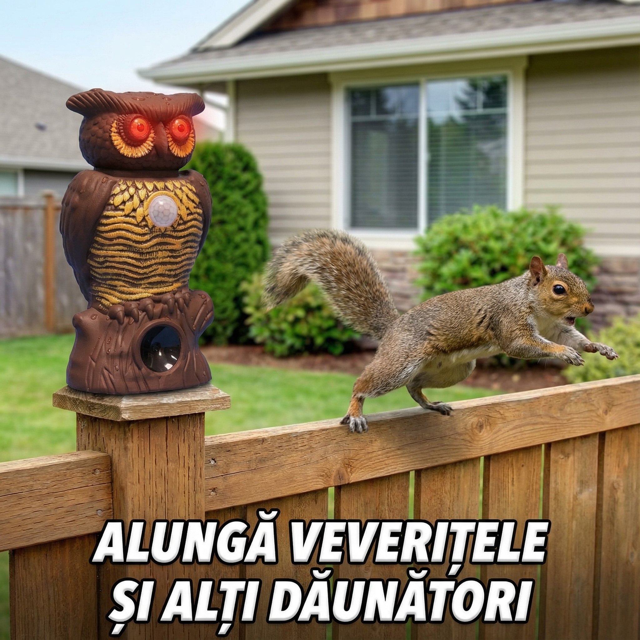 Unul dintre cele mai mari avantaje ale acestui dispozitiv este "eficiența naturală". Spre deosebire de otrăvuri sau capcane, bufnița ultrasonică este complet inofensivă pentru mediul înconjurător. Mai mult, este 100% sigură pentru animalele tale de companie, astfel încât câinele sau pisica ta se pot juca liniștiți în curte, în timp ce dăunătorii sunt ținuți la distanță.
