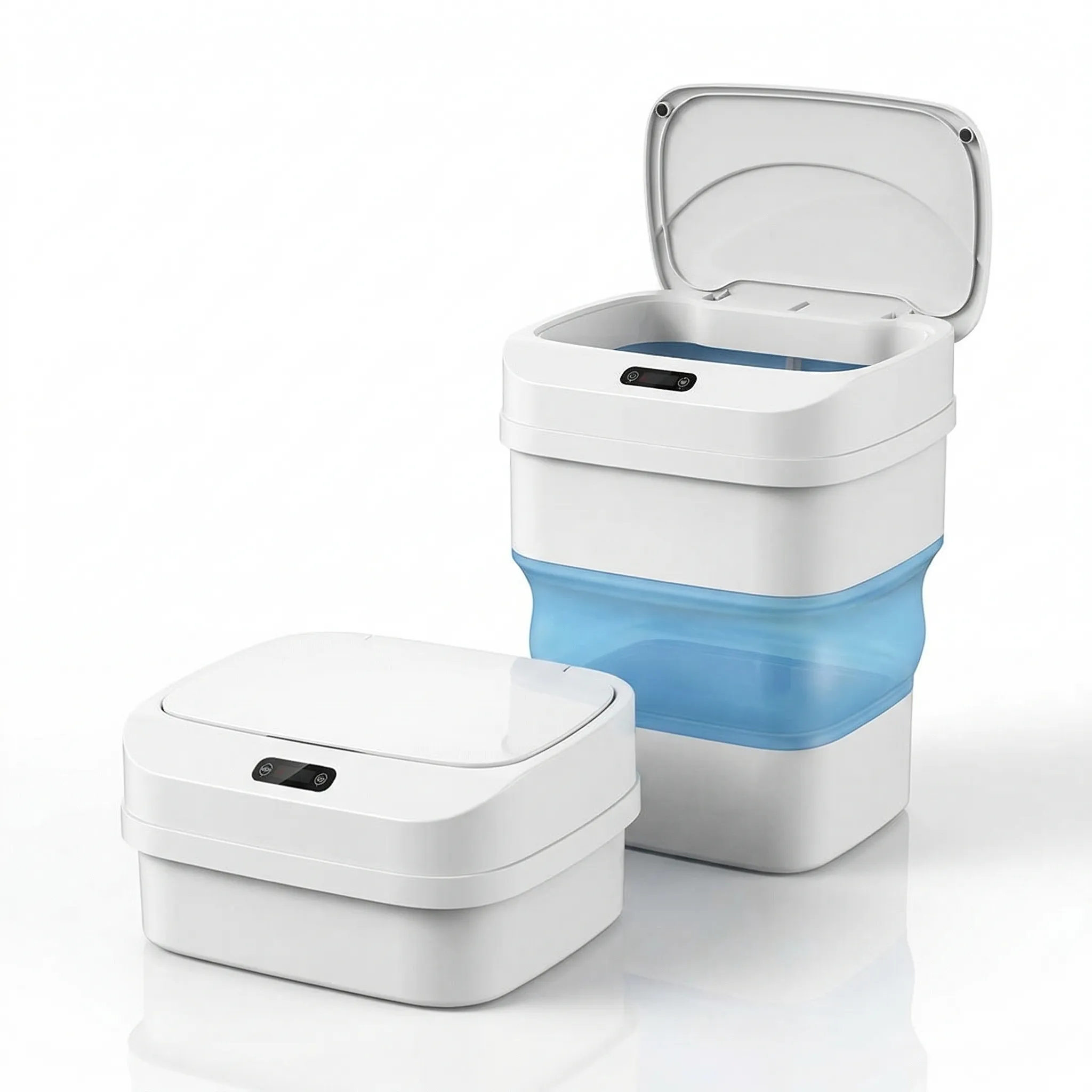 - Tip: Coș de gunoi smart pliabil cu senzor.