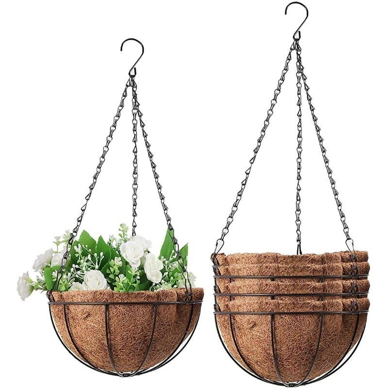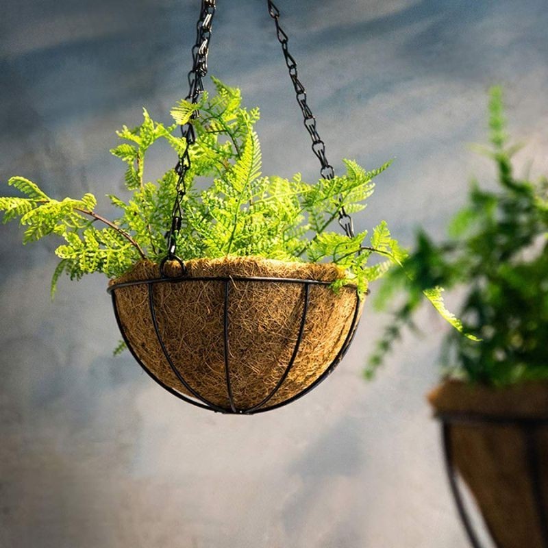 Materialele utilizate sunt alese pentru durabilitate și rezistență în timp. Metalul suportului asigură stabilitate, iar fibra de cocos este un material natural, biodegradabil, apreciat de clienții care preferă produse cu un impact redus asupra mediului. De asemenea, baza fermă a coșului susține greutatea solului și a plantei, prevenind deformarea.