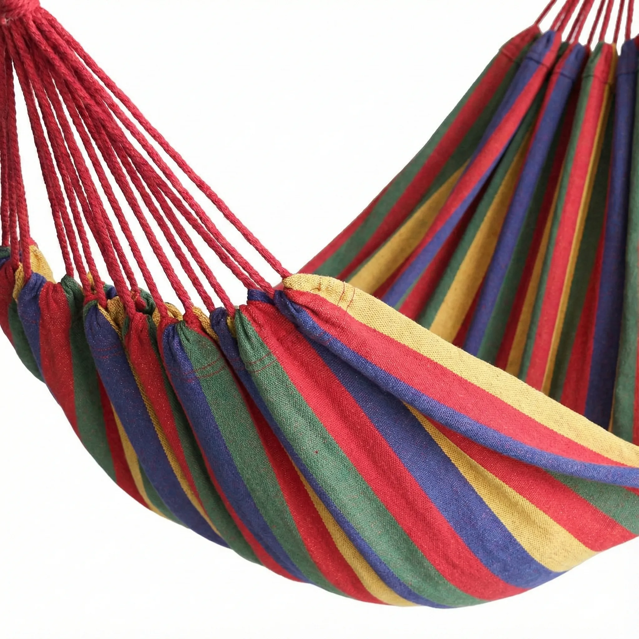 Proiectat pentru a oferi spațiu regal, acest hamac îți permite să te întinzi în voie sau să împarți momentul de relaxare cu persoana iubită. Datorită tijelor distanțiere din lemn, materialul rămâne perfect întins, eliminând senzația de "cocon" și oferindu-vă stabilitate și libertate de mișcare. Bumbacul premium este moale la atingere și respirabil, asigurând o temperatură optimă chiar și în zilele toride de vară.